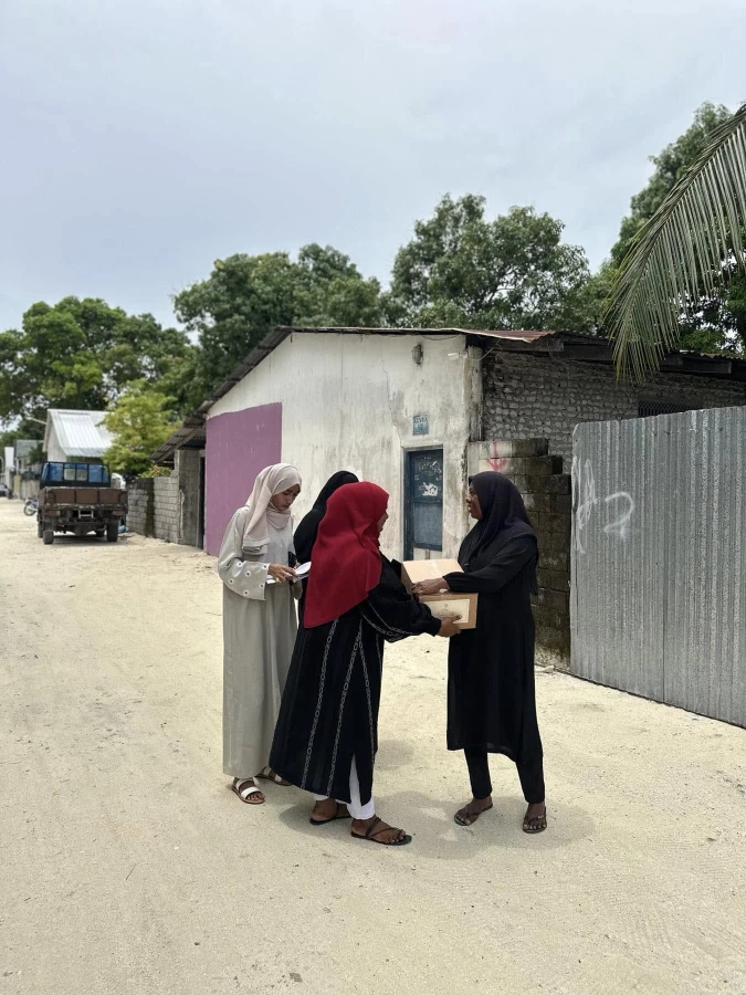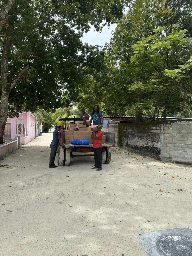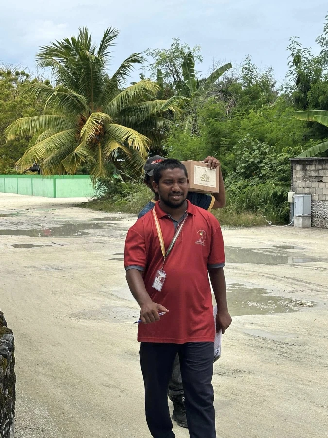 ރަށުގަ މީހުން ދިރިއުޅޭ ގެތަކަށް، ރޯދަ ހަދިޔާގެ ގޮތުގައި ބެހުމަށް ސަރުކާރުން ފޮނުވާފައިވާ މަސްދަޅު ކޭސްތައް ގޭގެއަށް ފޯރުކޮށްދިނުމުގެ މަސައްކަތުގެ ތެރެއިން!